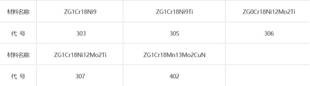 泵的過流部分主要零件的材料及其代號有下列五種: